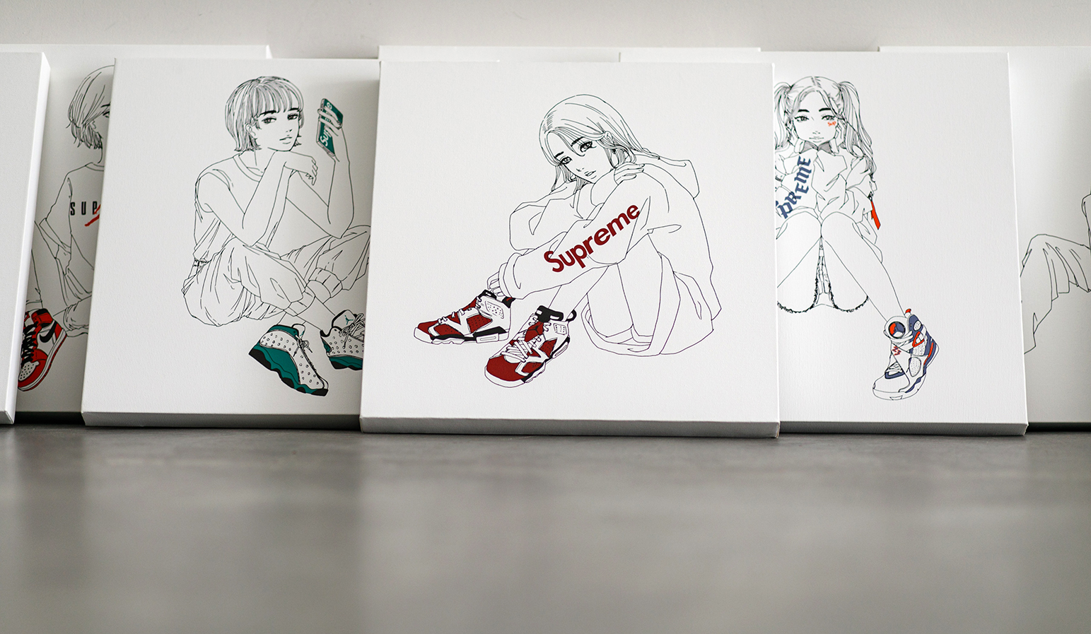 スニーカー(シューズ)が大好きな女の子(クリーム)をテーマにしたイラストです。